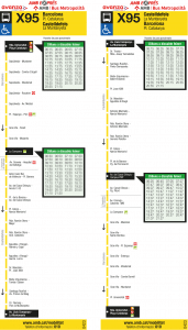 –Autobus X95: mit dem Bus X95 (Express-Bus). Der E95 ist das schnellste Mittel für die Leute, die das Stadtzentrum in kürzeste Zeit erreichen wollen. Er braucht 40 Minuten bis zu Pl. Catalunya. Er fährt weder am Wochenende noch im August.